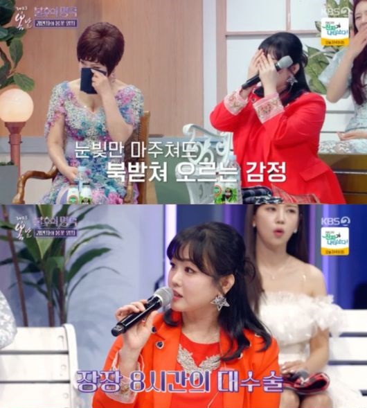 이에 김연자는 “오로지 사랑하는 가족과 노래, 팬들을 위해 얼마나 열심히 병마와 싸웠겠냐. 너무 훌륭하고 존경한다”는 말로 정미애를 칭찬했다. 정미애는 이번 무대에서 팬들에게 자신의 음악을 선보이며 눈길을 끌었다.