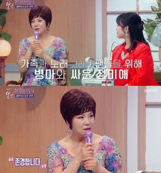정미애는 KBS ‘인간극장’에서도 설암 투병 사실을 공개하며 감동을 안겼다.