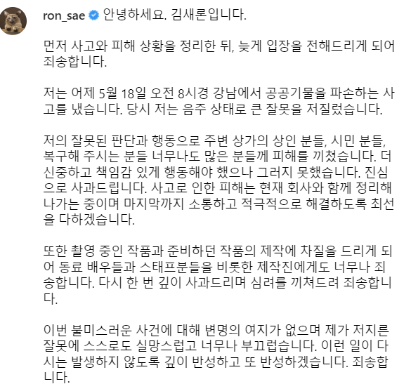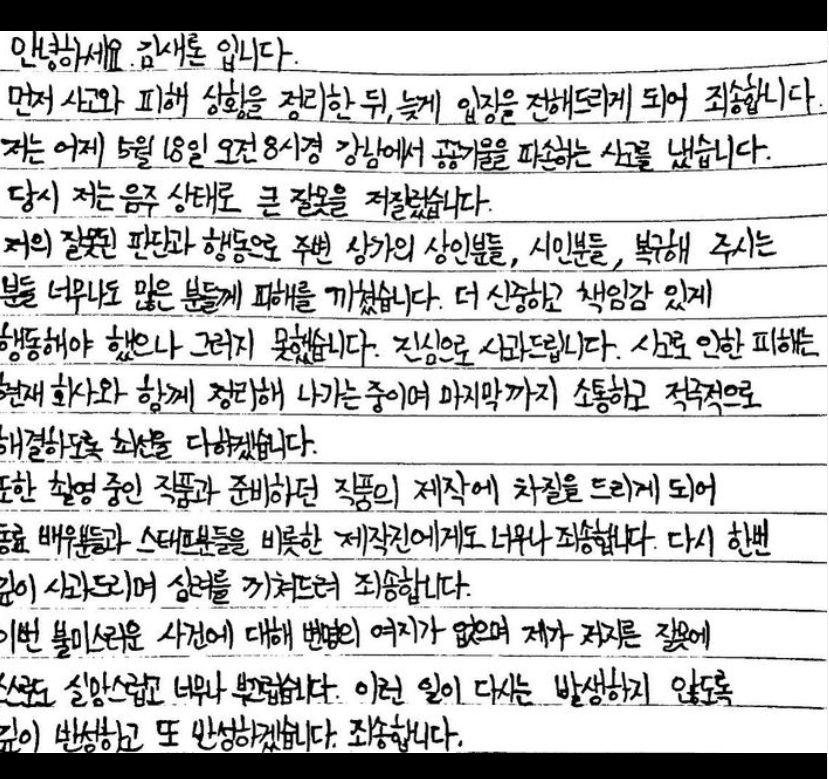 2023년 4월 18일, 김새론 배우가 음주운전으로 차량 사고를 일으켰다는 보도가 나왔습니다. 이 사건은 김새론이 드라마 '사냥개들' 촬영 중인 지난 3월 31일 오후 9시쯤 경기도 안양시에서 발생한 것으로 전해졌습니다.
